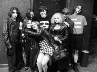 DRESSED TO KILL: The tech staff and two of the actors in “The Importance of Being Earnest” go all out for the Vashon Theatre’s midnight opening of the new Batman movie