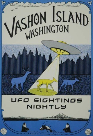 Café Luna’s December art exhibit, “The Imaginary Tourist,” will offer Island lore and a dash of Chamber of Commerce-esque marketing when local artist and geologist Greg Wessel presents a series of faux travel posters hyping the charms of Vashon.