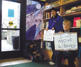 “I’ve never organized a protest before,” said Bonnie Nelson, who spearheaded Monday’s event. “But I feel strong about this. I feel the library needs to be here.”