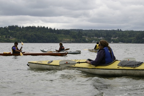 Activists practiced kayaking maneuvers Tuesday as part of the Localize This! Action Camp.