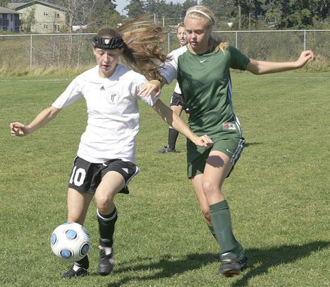 Port Townsend JV was short-handed so Pirate coach Liam O’Neil fielded only nine players, keeping out three substitutes, to keep the game even. Even so, Pirate Brooke McKallor took a pass from Marya Munsey in the third minute and put the ball in the back of the net to give Vashon a 1-0 lead that held to halftime.