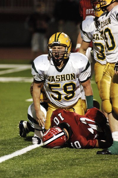 Vashon’s confidence was boosted early when it took only six plays on its first possession to hit paydirt. Quarterback Quinn Holert picked up 20 yards on a second down keeper and Nathan Betz, who gained 162 yards on 22 carries with three TDs, rambled for 34 yards to the Orting 5. Adrian Arceo muscled into the end zone to put Vashon out in front.