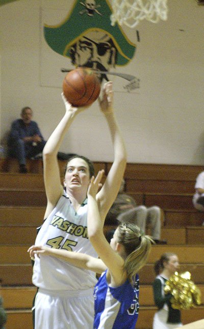 Eight Pirates contributed to Vashon’s offensive efforts, with scoring paced by three players who reached double digits — Kelly Costello (13), Elisa Wendt (11) and Charlotte Kehoe (10).