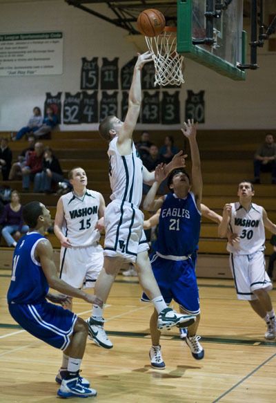 Vashon could not regain momentum in the fourth quarter despite a big steal and six points in the quarter by Holert and two backdoor lay-ins by Dan Lofland on assists from Gage. But Wegner was called for his fifth foul and had to sit out most of the quarter. Amick played well in the game, collecting six rebounds.