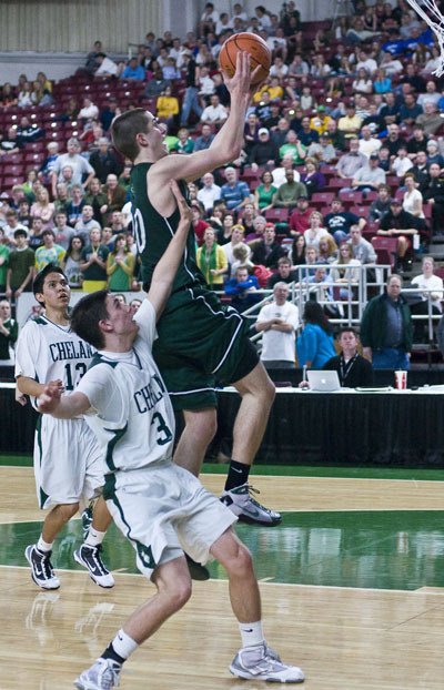 Chelan and Harris kept the pressure up in the third quarter, pulling to within four points. But Matt Kerns answered with a big three-point basket; Gage made several nice shots, and then Harris picked up his fourth foul with just over a minute left.
