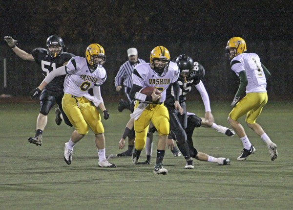 This was not the way it was supposed to end. Hearty Pirates tearfully trudging off the field; seniors, who had just closed the curtain on the final act of the drama that is high school football, frozen momentarily in the spotlight, standing motionless upon the brightly lit turf stage, in the consoling embrace of a parent or a coach; the wide neon eyes of the scoreboard staring without pity on the scene below: Meridian 55, Vashon 0.