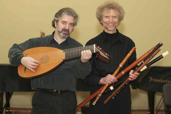 The two musicians will perform on period instruments, including the one-keyed wooden baroque flute, an eight-keyed flute made in 1820 and a Russian seven-string guitar.