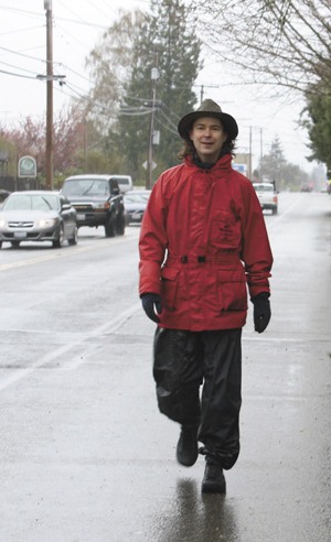 As Mielke walked briskly along Vashon Highway Monday dressed in a long rain coat, waterproof pants, boots and a wide-brimmed hat, he said that although he wishes the sun would come out more, he’s gotten used to the rain and cold.