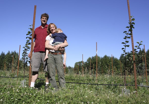 The Cherrys’ two-acre orchard — a perfectly spaced spread of spindly but promising trees — sits at the end of a quiet Island road, nestled between the historic Mukai farmhouse and the sprawling Island Center Forest. Nearly every day, Quentin plays around the house and orchard while his parents work, a Norman Rockwell-like scene of rural life.