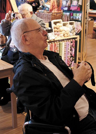 Jack Rabourn, 74, worked largely by himself that day, one of the many seniors rolling in his wheelchair around the store, photographing with his own Nikon. In earlier years, he did a lot of photography, he said, but then health problems intervened. Now he has picked up his camera again after learning that a long stretch of chemotherapy and radiation was not effective against a brain tumor.