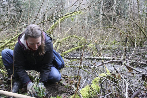 Islander Angela Schonbok was one of about a dozen volunteers who turned out for an ambitious work party held by the Vashon-Maury Island Land Trust, which recently got a $5,000 grant from REI to restore the watershed.