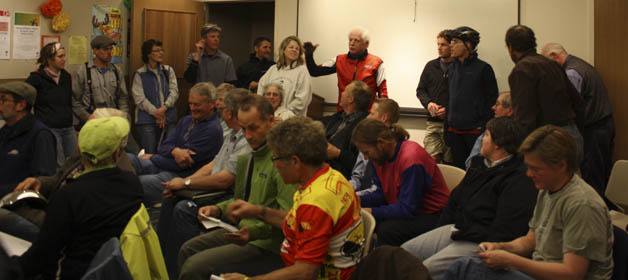 Nearly 40 cyclists met with King County officials Wednesday night to register their frustrations with the county’s aborted rumble strip project.