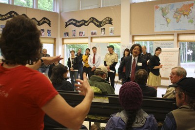 The meeting — the county’s first public gathering since the rumble strip controversy erupted a month ago — began as an “open house,” with stations where Islanders could speak individually to county officials. But after Islander Ann Leda Shapiro took to the stage yelling “mic check!,” a phrase made famous by the Occupy Movement, County Transportation Director Harold Taniguchi good-humoredly agreed to change the meeting into a wide-open give and take — and then proceeded to get an earful.