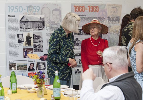 Amidst photos and text about the Episcopal church’s storied history — artfully created by a committee of parishioners, with one decade on each panel — are images of local and national events: wars and assassinations, pop music and the moon landing, the Asarco plume and the 1970 bombing of Vashon’s courthouse.