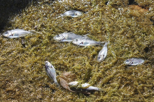 Algae kills hundreds of fish in harbor