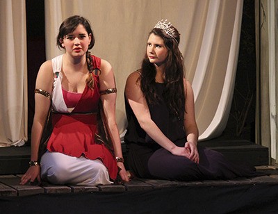 “The Creation” sets the tone for the show as Zeus, played by Isabelle Porter, explains how order came to the world while two laundresses, Chelsea Griffith and Jessica Johnson, further elaborate as they work at river’s edge. Ellie Bacchus is the lovely supplicant and McCallie Moyer convincingly plays her role as a scientist.