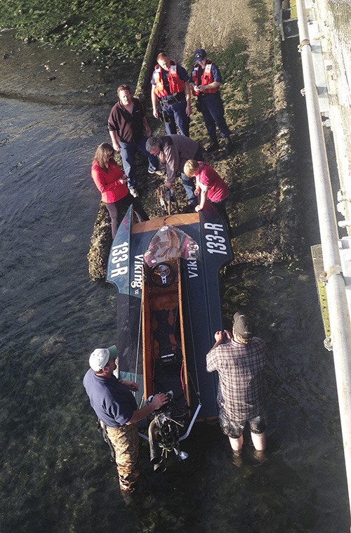 Paul Hoffmann, who said his boat flipped after hitting a wave wrong, was pulled out of the water and had his boat towed to shore by a boater that follows the hydros every year. Hoffmann was uninjured, but the Coast Guard and King County Sheriff’s Office both responded after someone reported the accident, and Hoffmann was issued a ticket for not wearing the proper life jacket (he was wearing a racing life vest) and not carrying a boater education card. The citation totalled less than $200, according to Dept. Charlie Akers with the King County Sheriff’s Office’s marine unit.