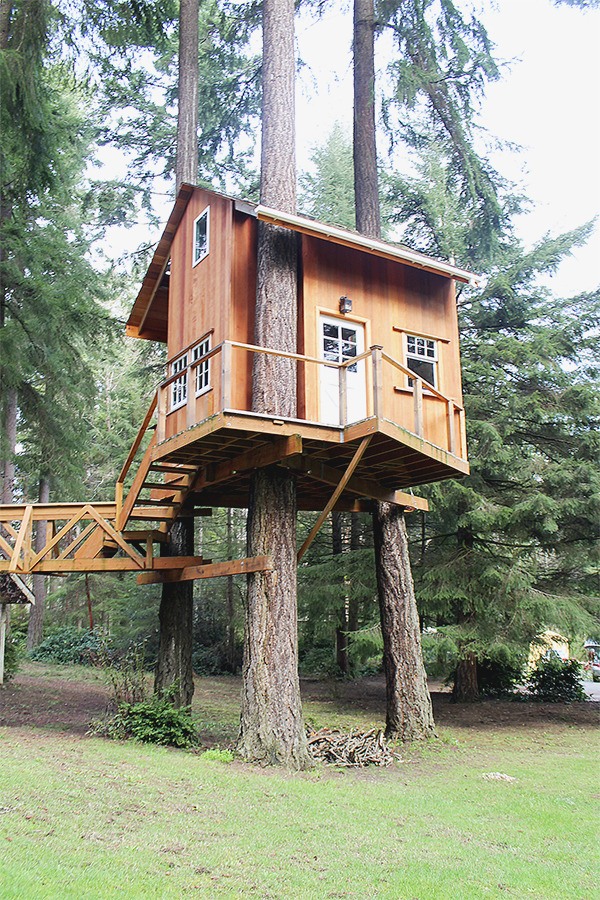 It started out innocently enough. After a day of playing in the snow at Snoqualmie a few winters back, my partner Richard Parr and I stopped for a quick turn through the gift shop at the Salish Lodge to find presents for some far-away family members. Little did I know when I picked up Pete Nelson’s “Treehouses of the World” book and said “Hey hon, have you seen this?” that I had planted a seed that would grow into the mother of all DIY projects.
