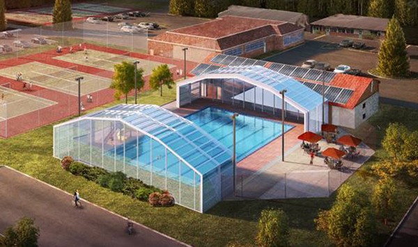 The Friends of the Vashon Pool came together at the end of last summer, disappointed that the outdoor swimming season was drawing to a close. Since then, they have secured a commitment from the park district to extend the season this year and have been researching pool enclosure possibilities. Now, Bob McMahon, a member of the group, said they believe a retractable, transparent enclosure that could open and close is the best option, and they worked with island architect Charlie Choo, who created the rendering shown here to convey possibilities.