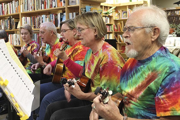 The Vashon Island Ukulele Society showcased its talents at the Vashon Bookshop last Friday. Members pictured