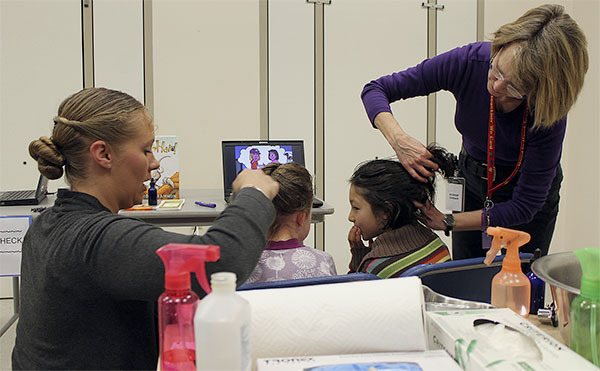 As they combed through and peered at the heads of children who lined up for inspection, the pair kept up a running commentary that was aimed at dispelling myths about the insects.