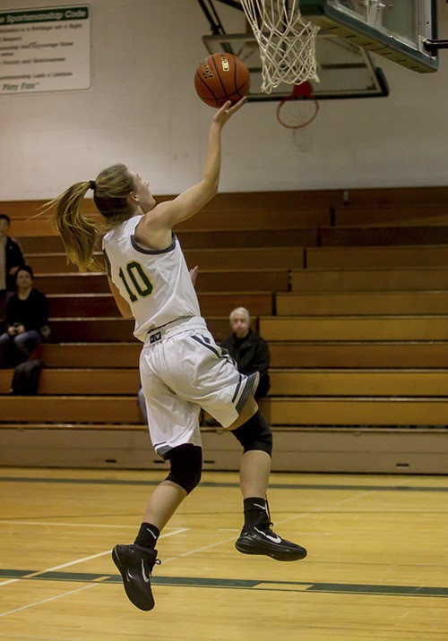 Senior Annika Hille goes up for two points during a home game.