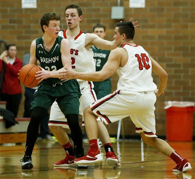 On Saturday evening, the Vashon High School boys’ varsity basketball team played its final game of the 2015-2016 season, losing 51-41 in the regional playoffs of the Washington State tournament to the King’s Knights from Mountlake Terrace.