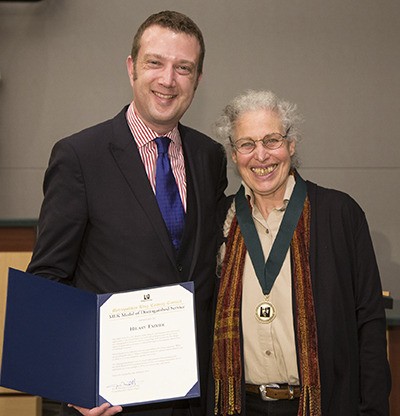 Hilary Emmer, one of Vashon’s most celebrated activists, received the first-ever Martin Luther King Medal of Distinguished Service from King County Councilmember Joe McDermott Monday for her years of work on behalf of low-income people.