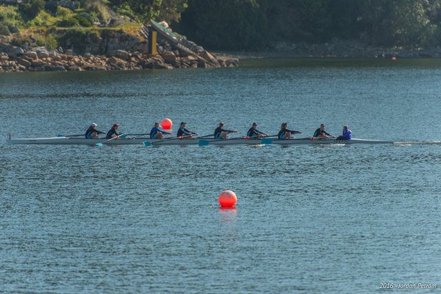 Races proceed with a clock-like cadence every seven minutes. The finish line area is punctuated by about a minute of screaming with teammates and parents urging their rowers to either hold on or catch up. Then six minutes of calm until the next race comes down the course. A total of 190 races are completed in just over two days of racing.