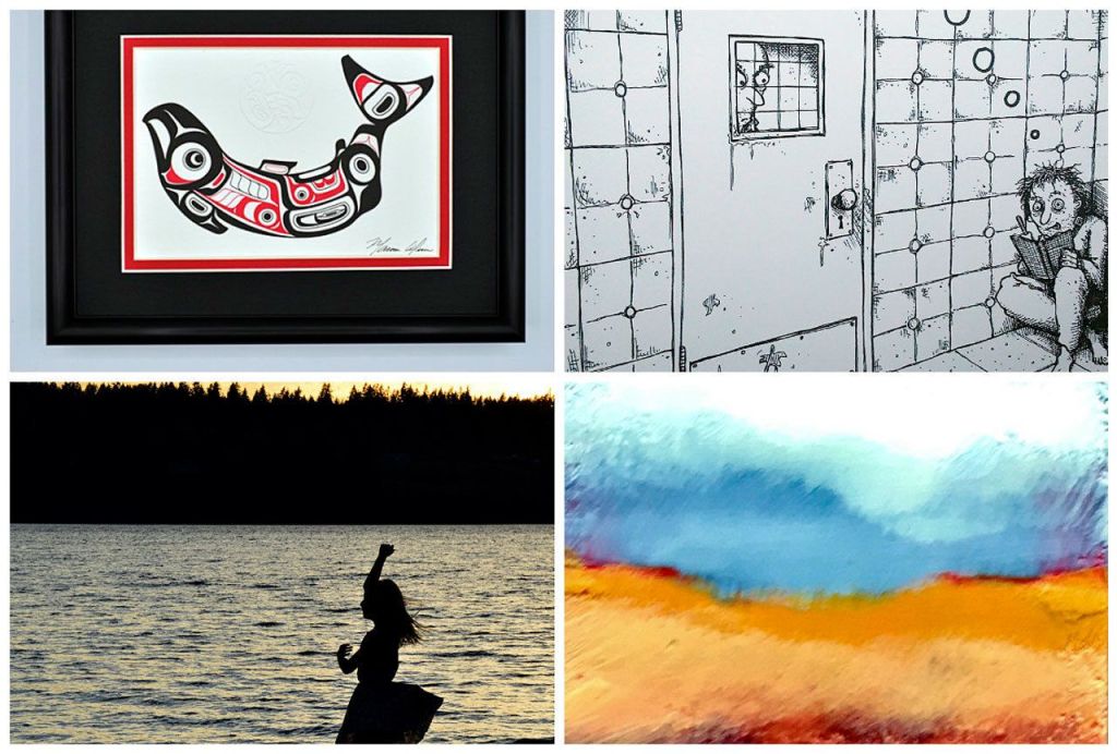 Art on display will include work by Marvin Oliver (top left), Adrian Leonard (top right), Jiji Saunders (middle right), Rose Belknap (lower right), Odin Lonning (lower left) and Gary Smith (middle left).