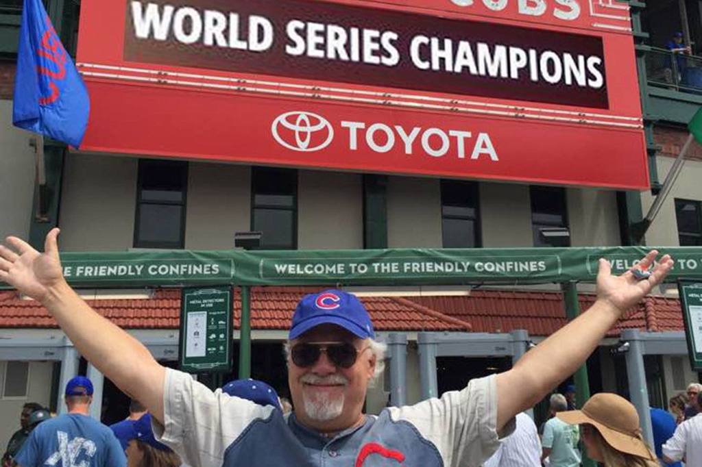 Memories flashed. My dad lived his entire lifetime within the 108 years the Cubs had gone without a title. He never got to see them win it all, but if not for him, I’d have never become a fan. When I was growing up in northern Indiana, he took me to Wrigley Field for countless Sunday doubleheaders. My cousins and I were raised on Cubs baseball and knew every player’s stats, stance, style and swing.