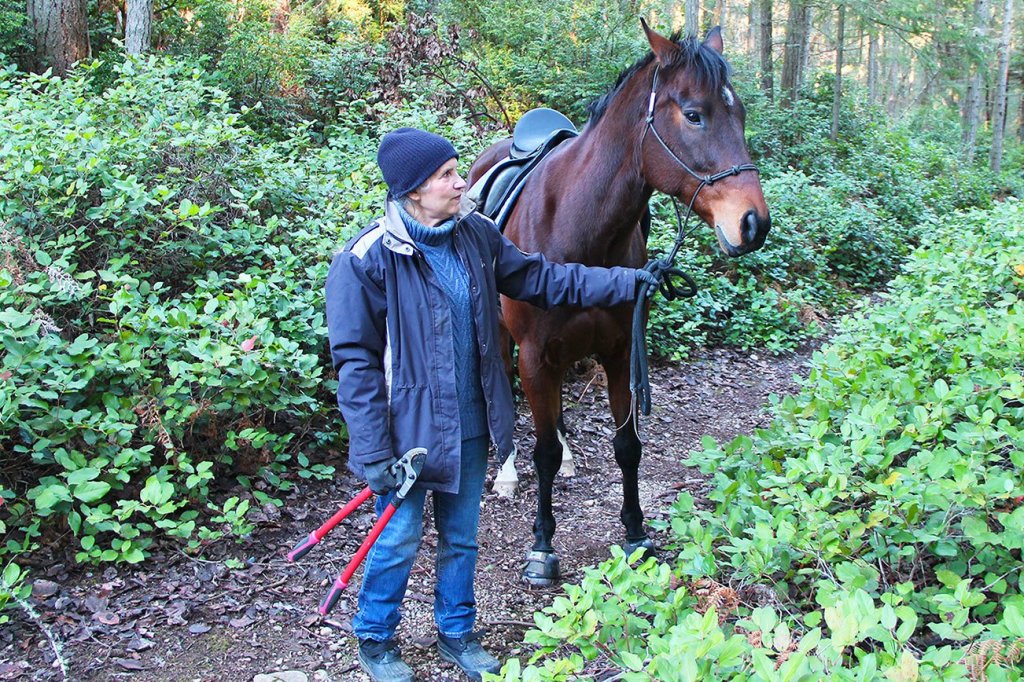 On Friday, Bradley and her friend Carla Pryne took a walk through the property’s woods with two of Bradley’s horses. With garden shears in her hand, the outing was just another opportunity to keep the area maintained for others.
