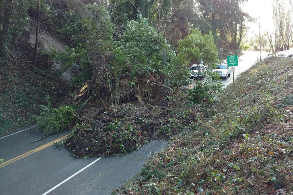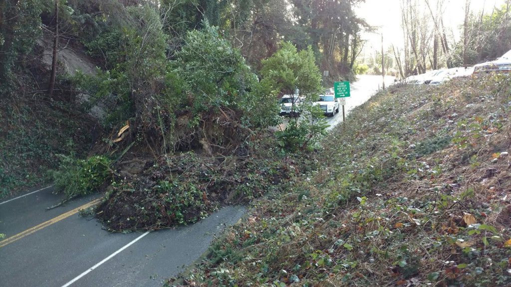 Landslides close 103rd near ferry dock, Quartermaster Road