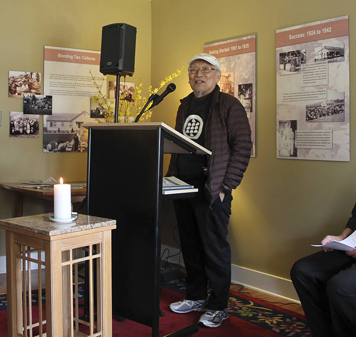 Lonny Kaneko reads his poetry on the Day of Remembrance at the Mukai home in February. (Susan Riemer/Staff Photo)