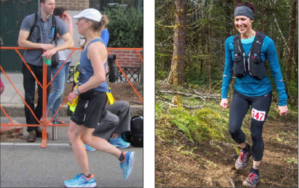 Left: Islander Debby Jackson a this year’s Boston Marathon. The race marked her 10th marathon in 10 years.                                Right: At the Tillamook Burn 50-miler in Oregon, islander Tara Vanselow had what she called a fantastic race and finished eighth of 122 women. (Courtesy Photos)