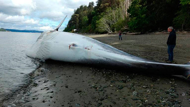Fin whales are an endangered species still recovering from commercial whaling and are the second largest of all whale species. Cascadia Research officials say the whales appear to be especially susceptible to vessel collisions as this whale represents the 12th to be stranded in Washington since 2002. Ten of those had evidence of pre-mortem blunt force trauma attributed to being struck by large ships.