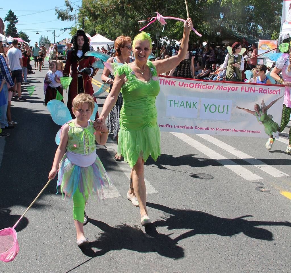 While many candidates were visible for their causes in recent months, Carette, by many accounts, outdid them all. She began in March — considered early at the time — and held house parties, gave presentations and set out donation containers. Beyond that, she attended Fairyoke, spoke at two island faith communities, sold mugs online and at the Farmers Market and showed a one-minute film at the Vashon Theatre this last month. She jokes that her wife and campaign manager, Sue Carette, insisted she put on her Tink outfit on First Fridays, stand on the street corner and make some money.