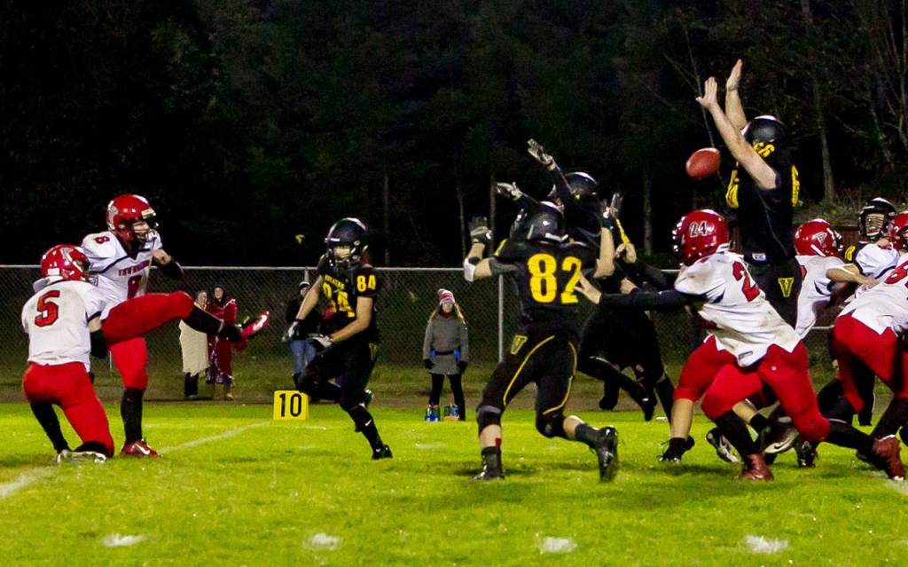 Then, Port Townsend took the ball and also scored six points. They were set to win the game if they either went for a two-point conversion or an extra point. The Redhawks decided to try for the extra point with a kick. And, in a stunning development, senior Cody Whitman jumped into the air and blocked the kick.