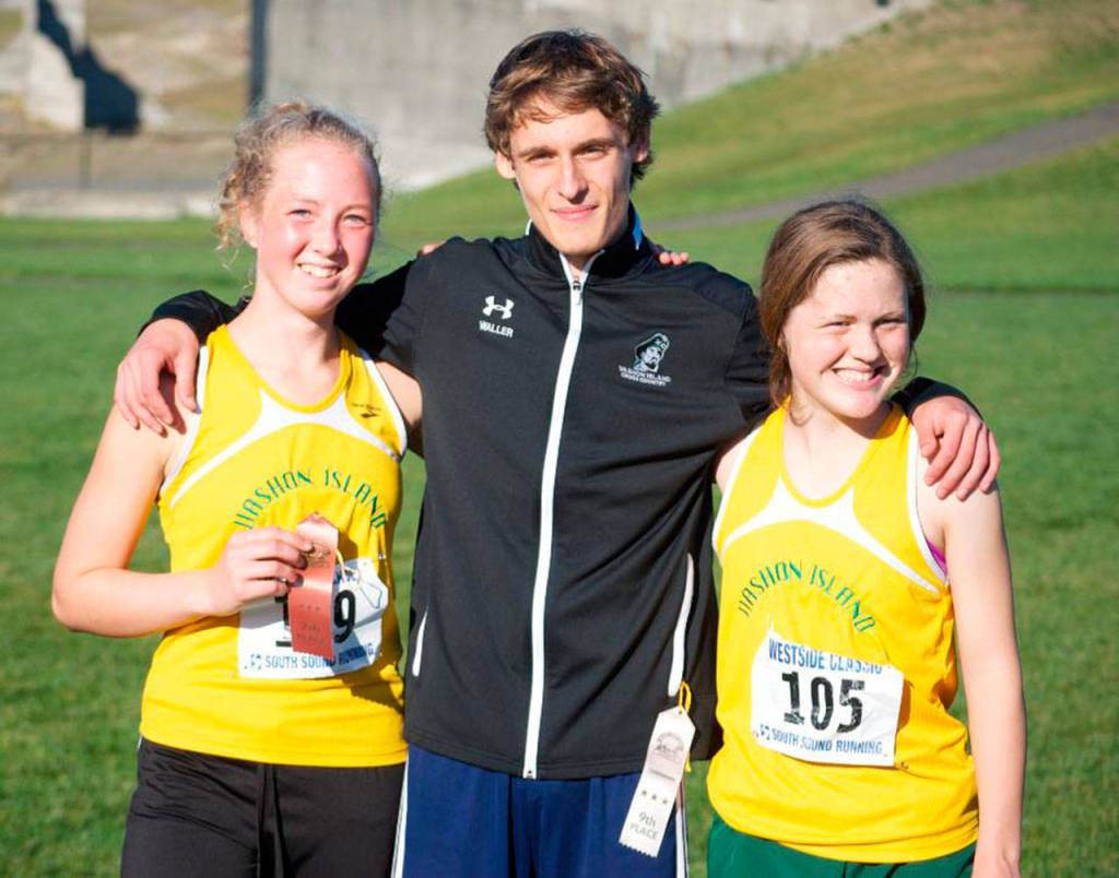 Last Saturday, the morning fog enshrouded the Chambers Bay cross-country course, then lifted to turn the day sunny and warm, which brought smiles and brightened the spirits of West Central District cross country racers and supporters. The bright yellow singlets of the Vashon Pirates’ cross-country team followed the sun’s example, bringing smiles and high spirits as the teams raced to three individual berths in this weekend’s state championships in Pasco.