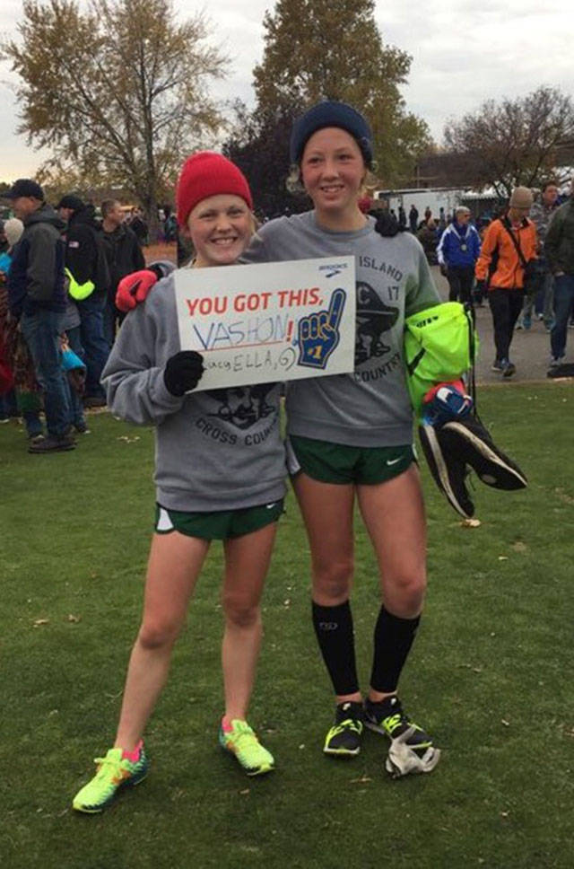 First to run at 10:30 a.m. were junior Lucy Boyle and freshman Ella Yarkin. The two have been running very close times and finishes all year and ran together in this race as well, crossing the finish line together in 22:27 on the 5K course. Both runners are expected to return and race on the Vashon team next year.