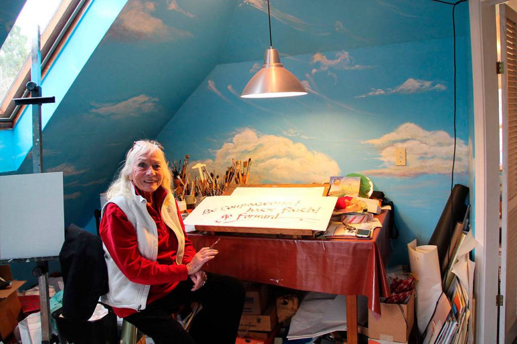 Adventurous of spirit. That’s how longtime islander, calligraphy artist, author, aerobatic pilot, photojournalist, Hiway Haiku innovator and a founding mother of Vashon Allied Arts Kaj Wyn Berry describes herself.