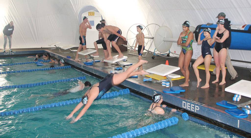 The Seals Swim Team came to practice and received some instructions about the new pool, including being mindful of its airlock and opening one door at a time.