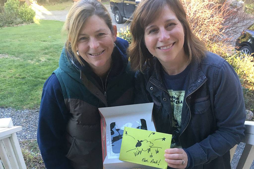 On International Pi Day, March 14, Vashon Sheepdog Classic director Maggi McClure dropped by to see Partners in Education (PIE) Co-President Jenna Riggs, presenting her with a marionberry pie and a surprise donation of $5,000 for the educational nonprofit.