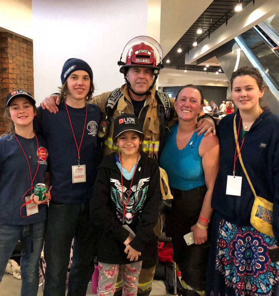 Josh Munger gathers with his wife and children at the recent firefighter stairclimb. (Courtesy photo)