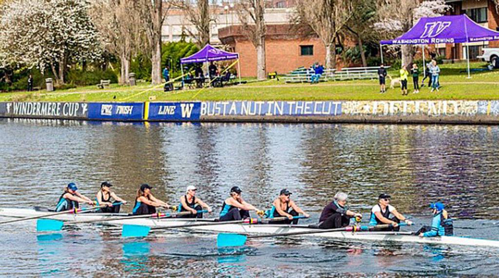 Rowing at the official kickoff of the University of Washington’s spring rowing season, the Vashon women finished nearly nine seconds ahead of Mt. Baker and Pocock Rowing Center on the 2,000-meter race through the Montlake Cut.