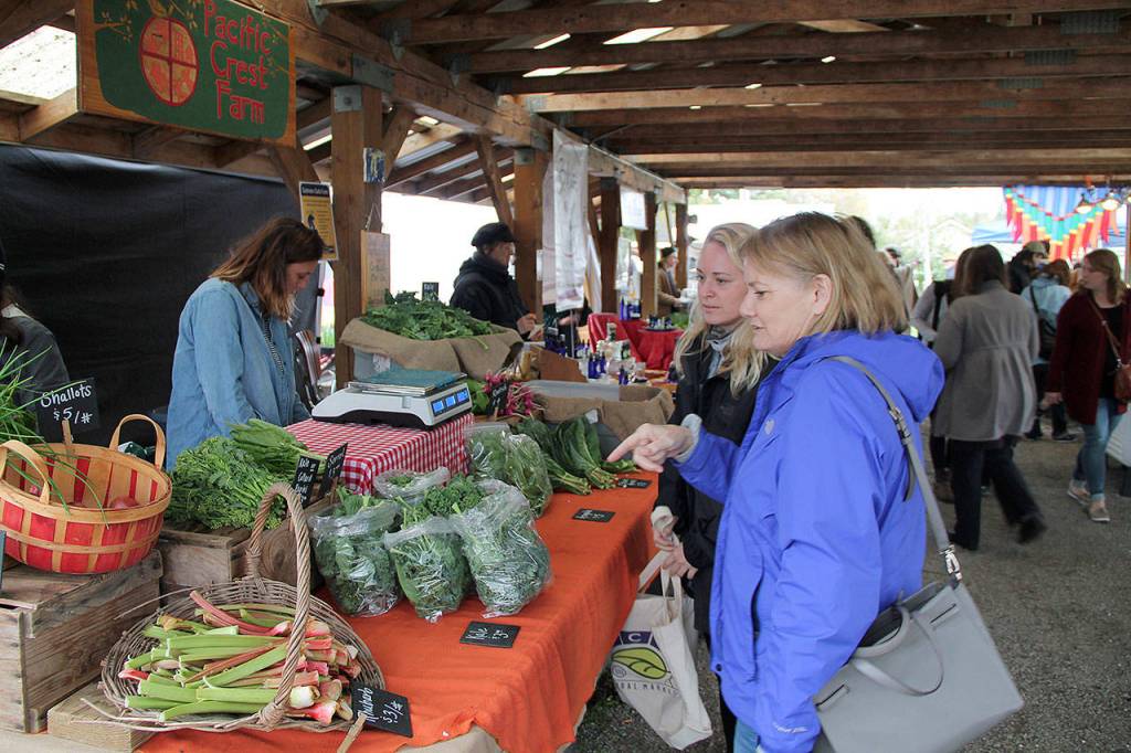 The Vashon Farmers Market opened for the season on Saturday with farmers, artisans and musicians all there. While the forecast for the day had been dismal, the weather was not bad at all, and a crowd came out to buy some of the early spring harvest, plant starts and more.