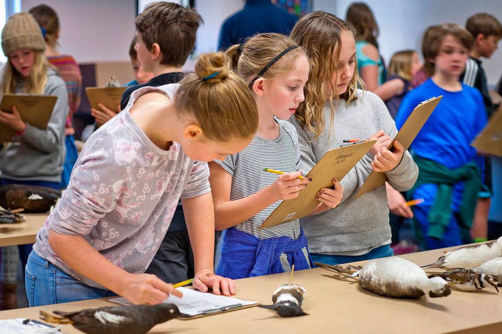 Vashon Audubon has had a part in teaching elementary students about birds since 1990, and this is the fifth year Parker has been the volunteer teacher. She covers bird identification, habitat, behavior, calls and songs. The students also get a chance to examine museum specimens, do bird-related art projects and take birding field trips to KVI beach, Nisqually Wildlife Refuge and the Chautauqua Woods.