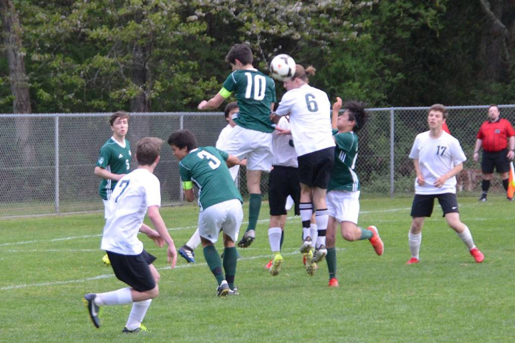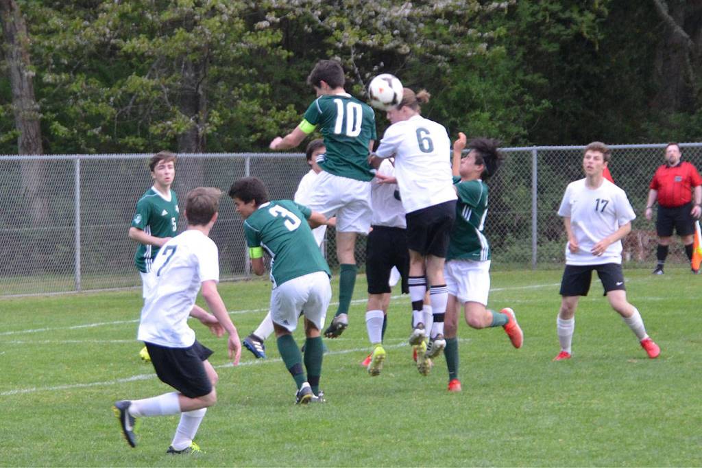 The Vashon High School boys’ soccer team played two games last week and is one game away from claiming the Nisqually League championship.