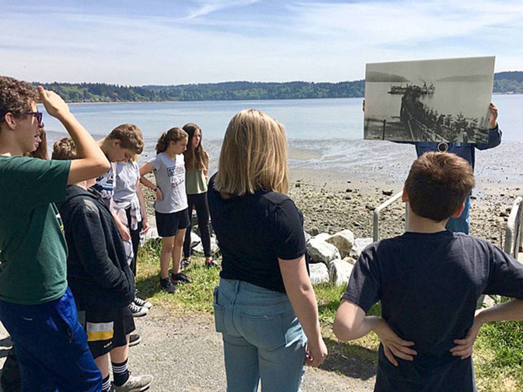 Seventh graders at McMurray Middle School this year are traveling the island, learning from local historians and listening to guest speakers as a way to learn Washington — and Vashon — history, not from a book in their classroom, but from the world around them.