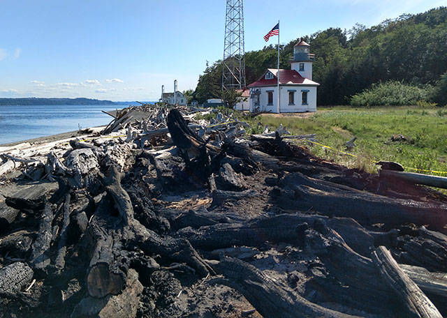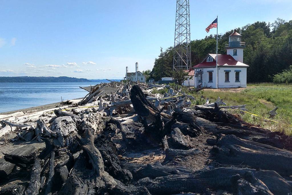 Days after the fire, the acrid smell of the burnt logs was still strong in the area, just feet from the lighthouse. At the Vashon Park District, Executive Director Elaine Ott-Rocheford said that it is typically illegal to remove driftwood from beaches, but she has contacted officials at King County to determine what to do with the burned logs and debris.